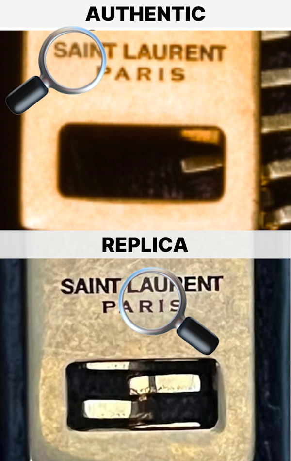 Located on the zipper pull, the tongue engravings are another hallmark of YSL quality. Authentic zipper tongues have deep, cleanly etched engravings, while fake versions tend to have shallow, poorly executed engravings that may fade over time.